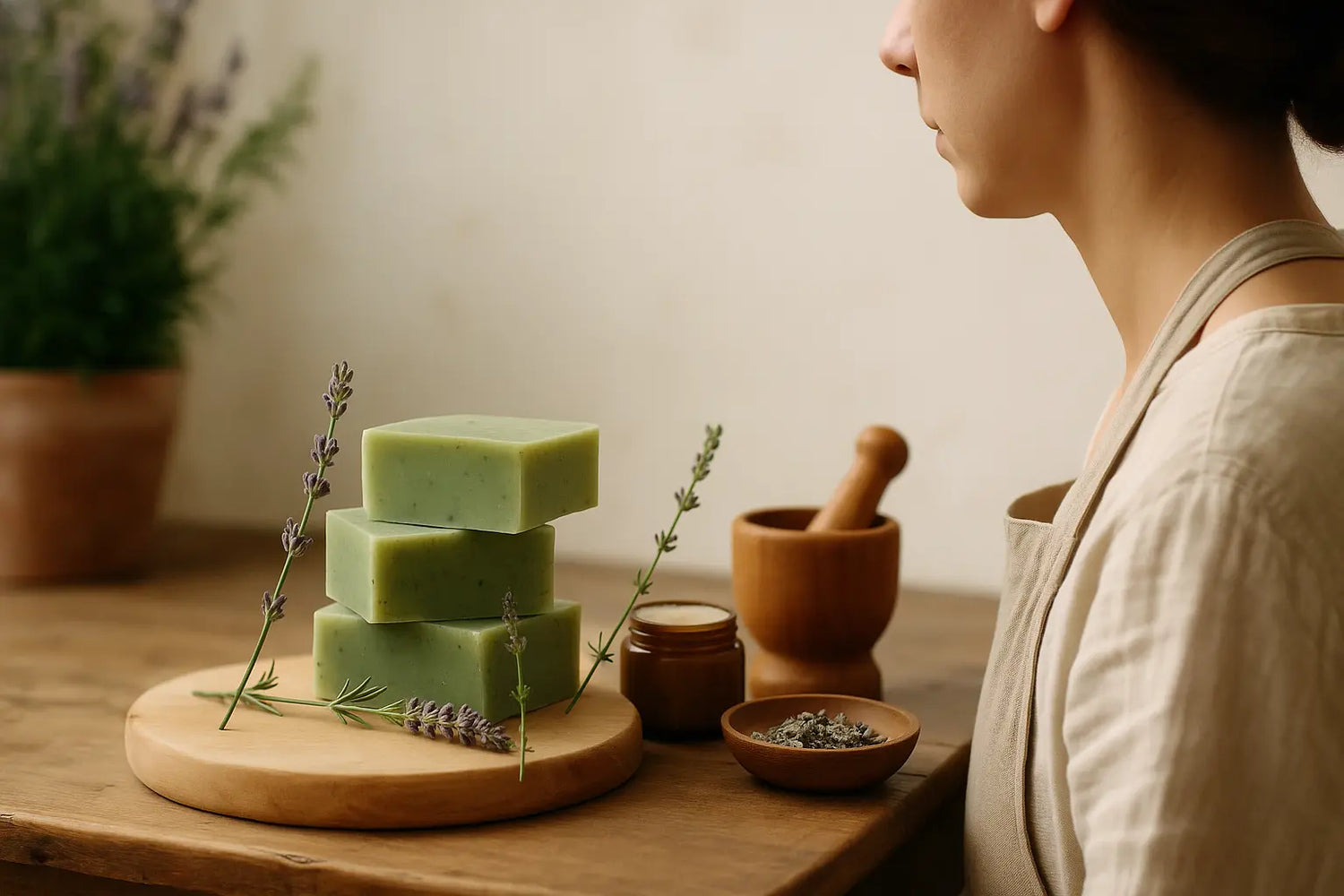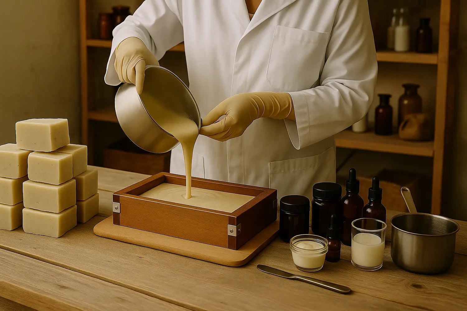 Il nostro laboratorio non è una fabbrica. È una bottega artigianale dove ogni fase – dalla colatura a mano del sapone alla chiusura di ogni vasetto – è seguita con attenzione. Produciamo piccoli lotti per garantire freschezza, e ogni prodotto porta la sua data di nascita.