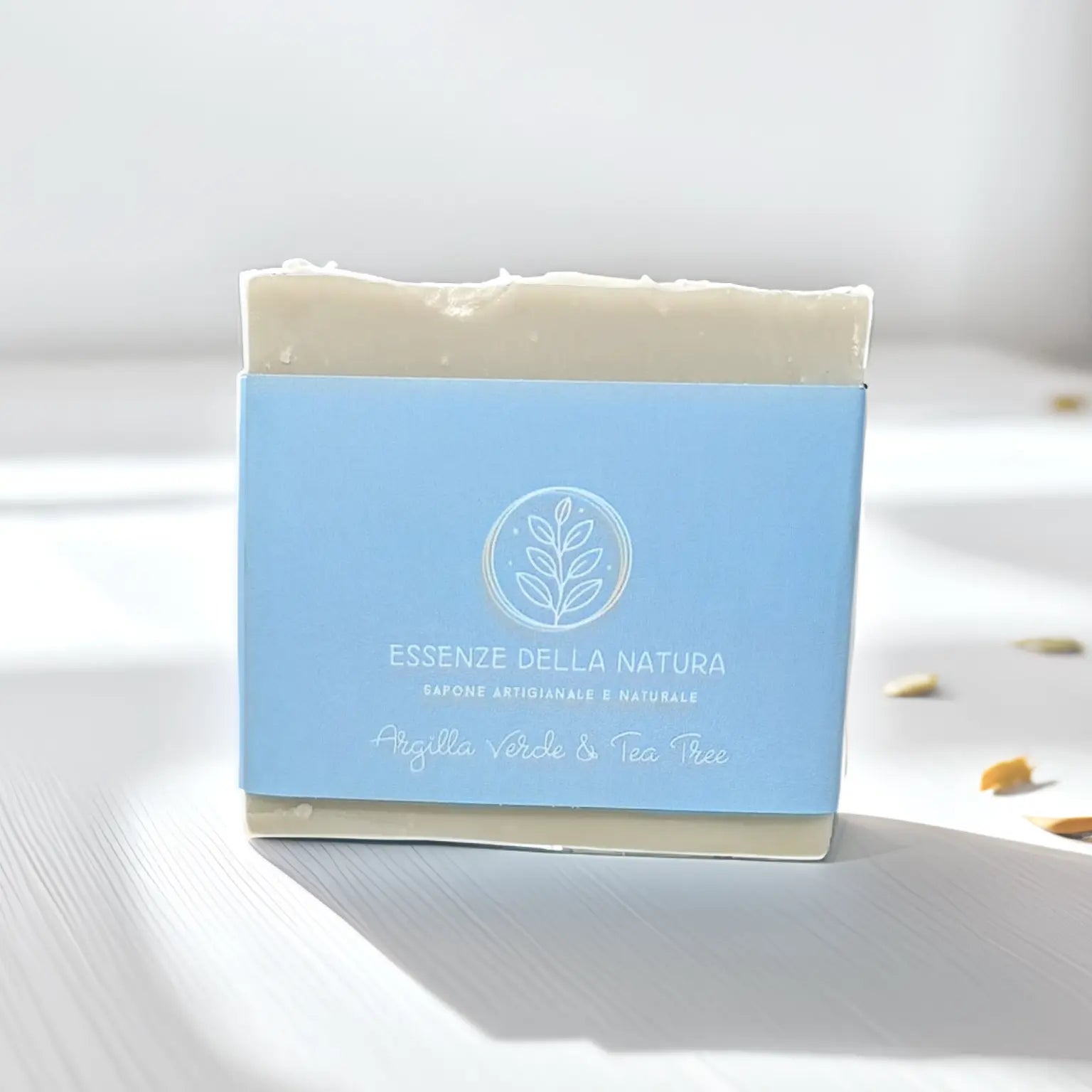 Il nostro sapone all'argilla verde e tea tree è progettato per aiutare a purificare e bilanciare le pelli impure e grasse. L'argilla verde, nota per le sue proprietà assorbenti e purificanti, viene potenziata dagli olii essenziali antisettici e rinfrescanti di tea tree e menta.
